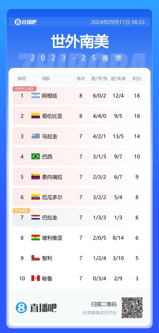 巴西首发:1-阿利森、4-马尔基尼奥斯、14-加布里埃尔、16-阿拉纳、2-达尼洛、5-吉马良斯、18-安德烈、8-帕奎塔、7-维尼修斯、10-罗德里戈、9-恩德里克